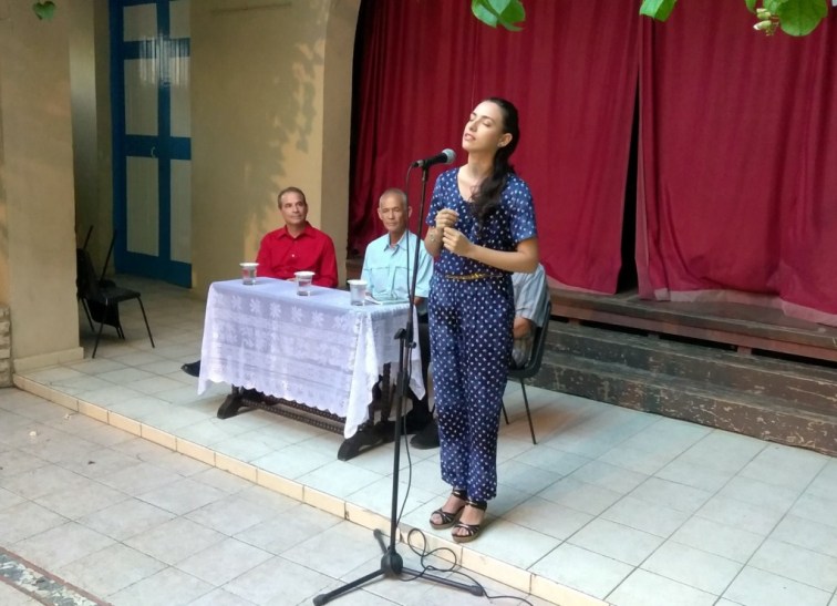 Después, entre pausas en la conversación, se disfrutó de las ya habituales historias de la narradora oral Georgina Soler; y también por segundo mes consecutivo, llegó la lozanía del joven declamador Elio Salas, que una vez, y a petición del público, rindió homenaje al Acuarelista de la poesía antillana, Luis Carbonell, al declamar su emblemático “El niño Valdé”.