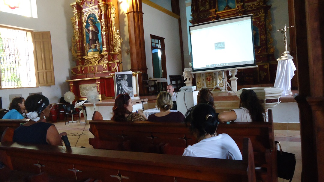 La apertura del encuentro estuvo protagonizada por la profesora Fleitas Monar, quien realizó un sintético pero valioso acercamiento al arte sacro en el contexto cubano, desde la etapa colonial hasta la actualidad.