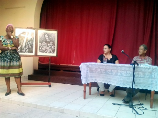 A unos metros de ella, están sus Divinidades I y II, mientras Mirtha Clavería comparte con el público algunos de los catálogos en los que ha sido recogida su participación en los salones de Arte Religioso y de Navidad, promovidos por el CCAM.