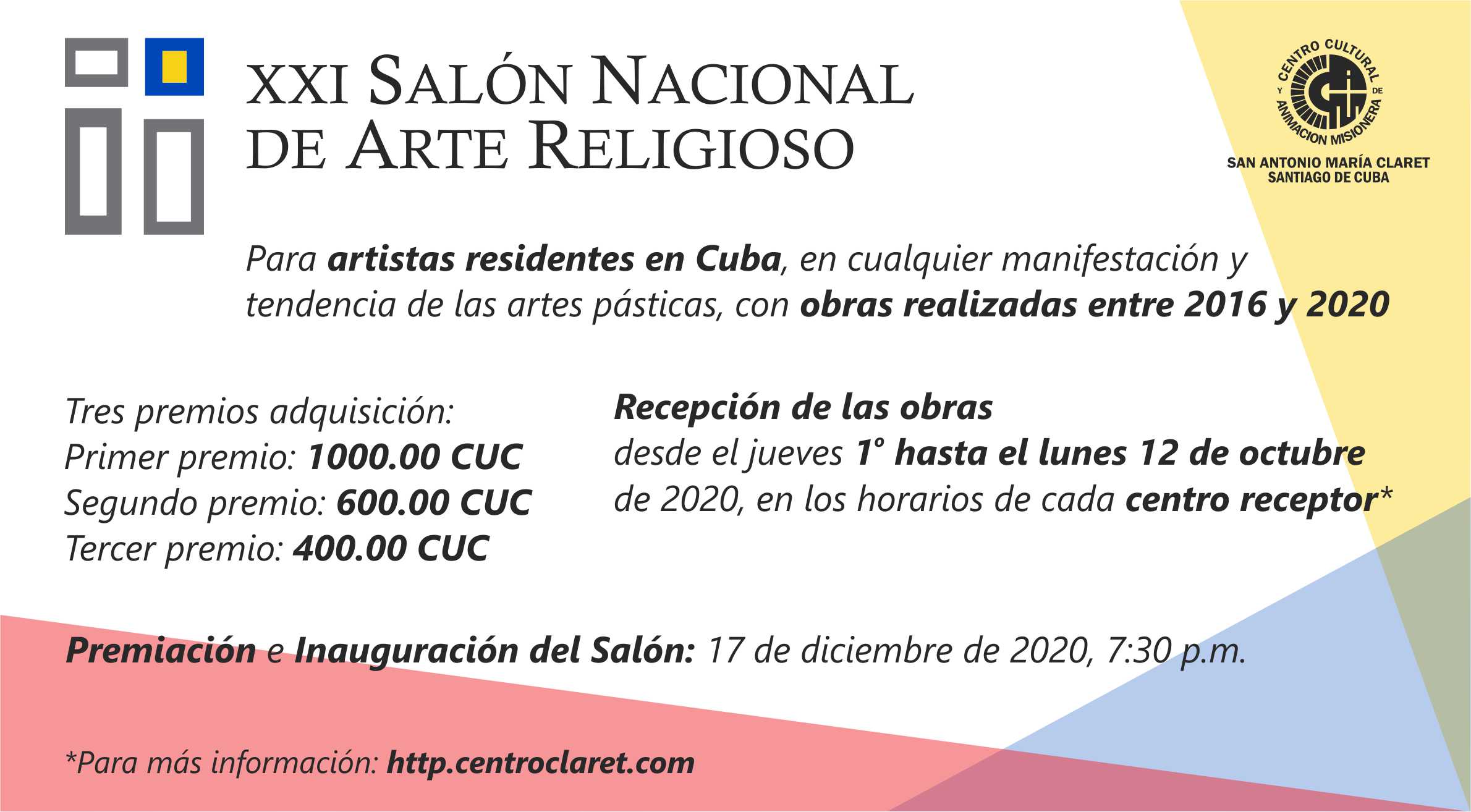 El Centro Cultural y de Animación Misionera San Antonio María Claret de Santiago de Cuba RATIFICA la convocatoria al XXI Salón Nacional de Arte Religioso, cuyas bases pueden ser consultadas desde aquí