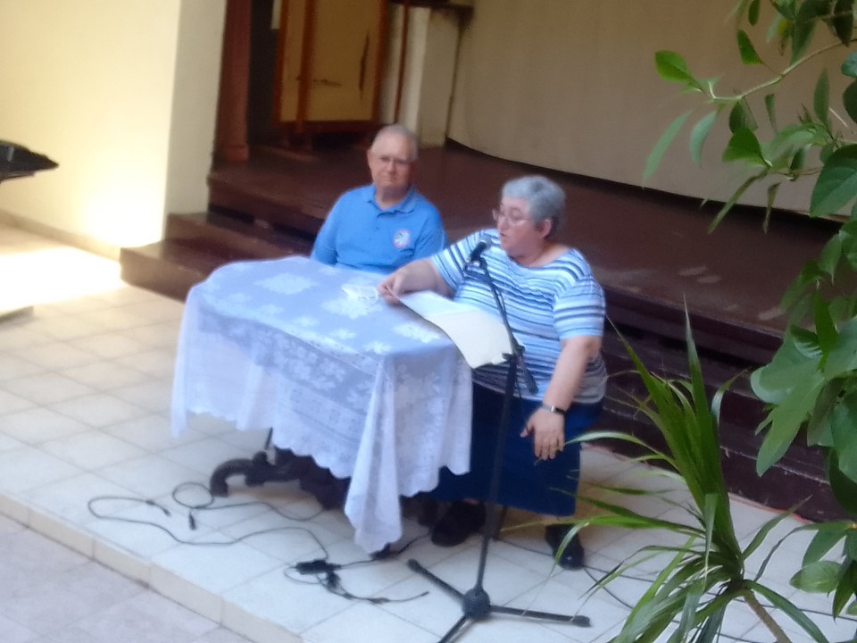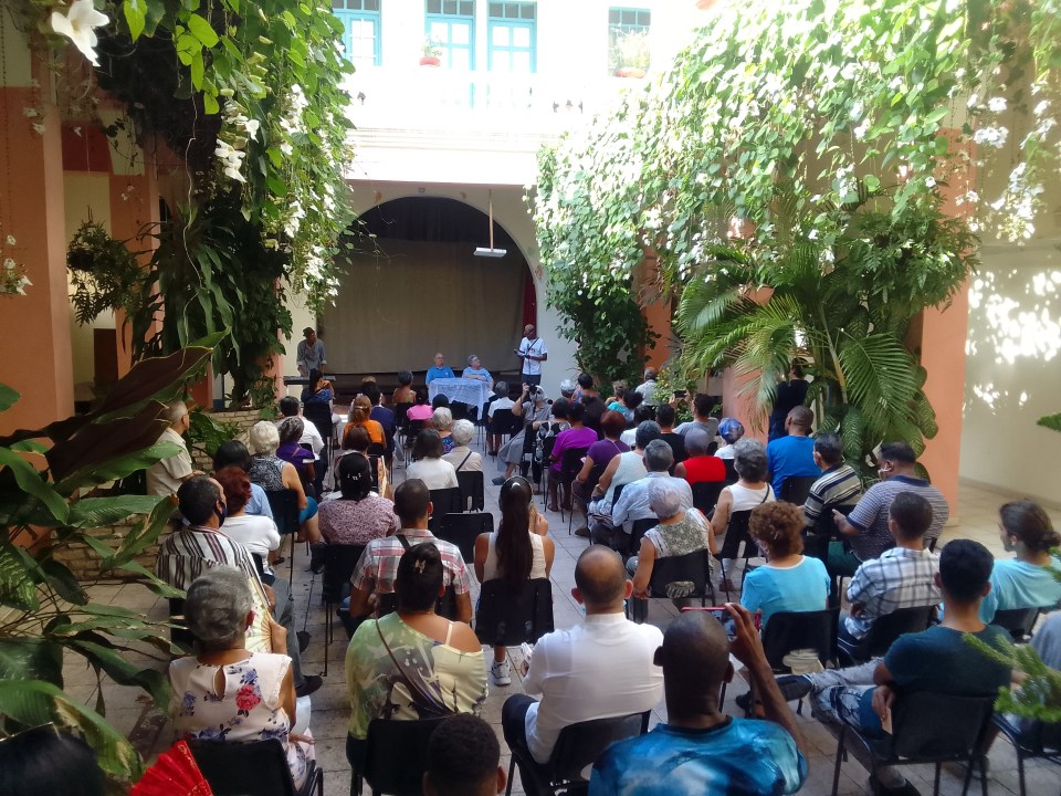 Y a las 5 de la tarde del día de la Asunción, con el gozo por la compañía de tantos hermanos y amigos santiagueros y la visita de las hermanas del Equipo Provincial Vivian González, superiora Provincia, Betty Morales, Vicaria y Ondina Cortes, celebramos la apertura de la Exposición mencionada. Fue una ceremonia sencilla y breve; en ella la superiora Provincial dirigió un saludo a los presentes, aludiendo a la importancia del acontecimiento que se celebraba. El padre Juventino Rodríguez, claretiano y actual párroco de Trinidad, dirijo una breve oración a la Madre Fundadora. A continuación Soledad Galerón, presentó brevemente como está distribuida la Exposición y agradeció toda la ayuda recibida para elaborarla y montarla, especialmente mencionó a Noel Pérez García y Javier Cascaret Sobrino, ambos del Centro Claret y a los jóvenes de la FLC. El joven Luis Alberto Magdariaga, acompañado al teclado por Francisco, nos ofreció el estreno del canto dedicado a la Madre París, y compuesto por é mismo.