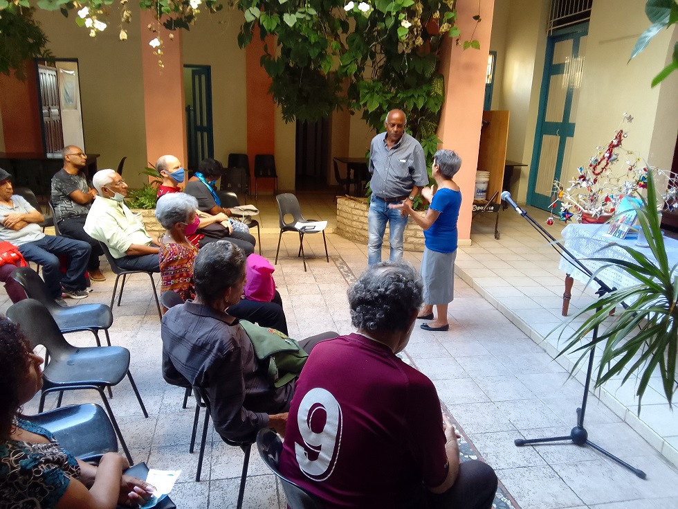 Rosa Rodríguez, una de las autoras publicadas, intercambia con el público