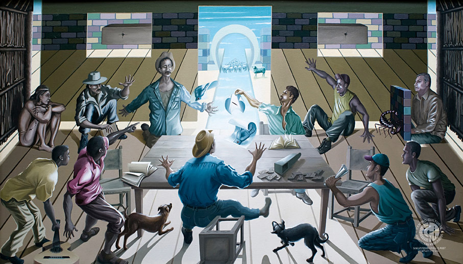 El artista tiene la intención de compactar las dos apariciones de Jesús en el relato de Juan 20,19-29. Quiere representar un Jesús Espíritu vívido, digno, esperanza del hombre nuevo. La horizontalidad de la obra alude a lo terrenal; el recinto es una casa de los campos cubanos, con una atmósfera metafísica, símbolo de que esta no es nuestra morada definitiva. El diseño general está en función de la Casa celestial.